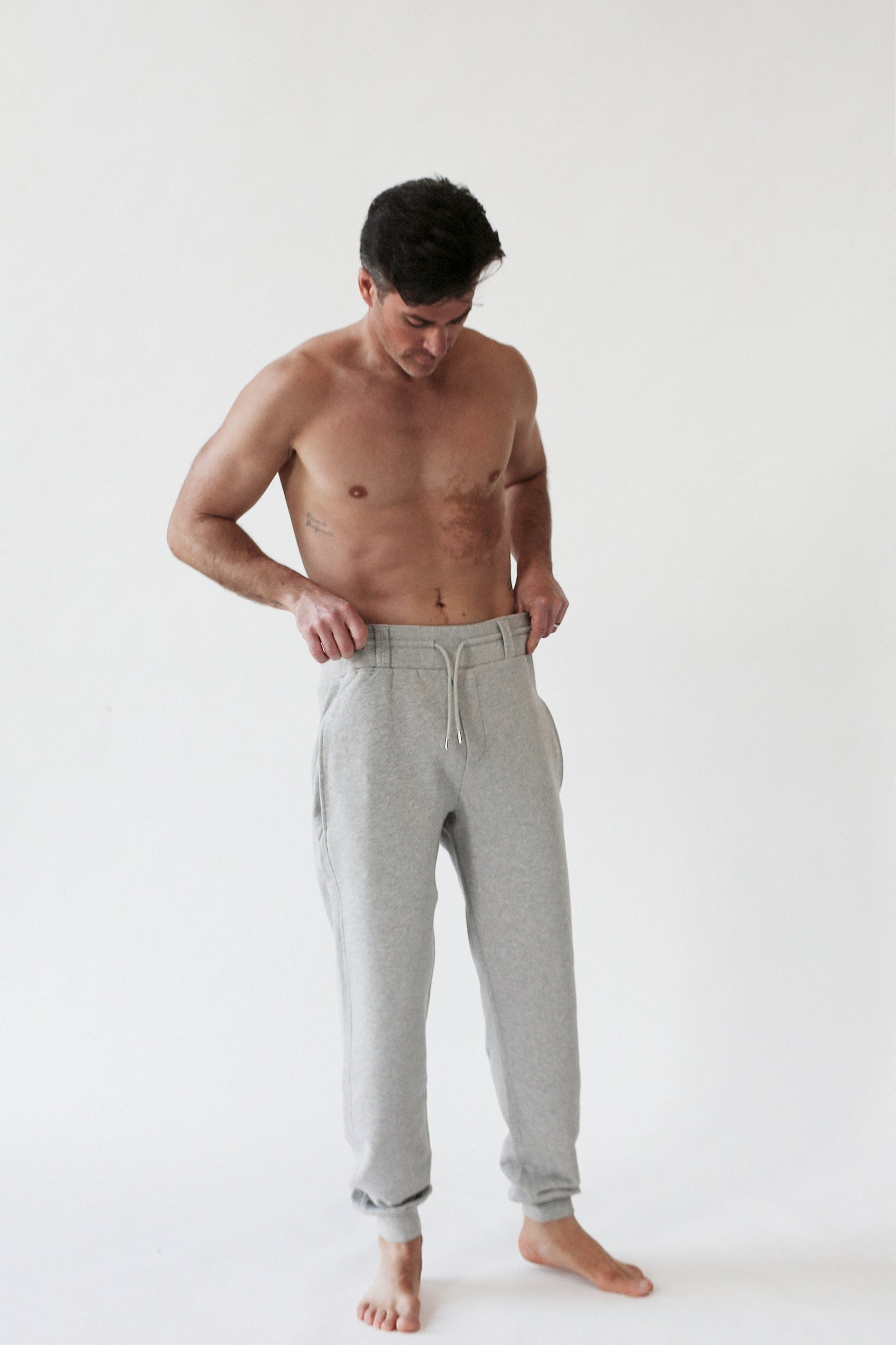 The Rise pant is our modern take on the jogger- designed with a mid-high waist, a round strap drawstring, a crotch patch and seamlessly integrated side pockets. Its cool, relaxed fit is effortlessly chic, making it perfect for both casual and elevated looks. Thoughtful details include two belt loops in the front and one at the back for added versatility.